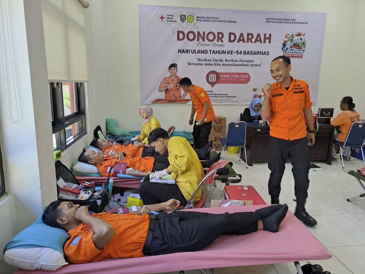 Memperingati ulang tahun ke-54 Basarnas, Kantor SAR Surakarta menggelar acara donor darah yang diikuti sejumlah anggota, keluarga dan relawan.